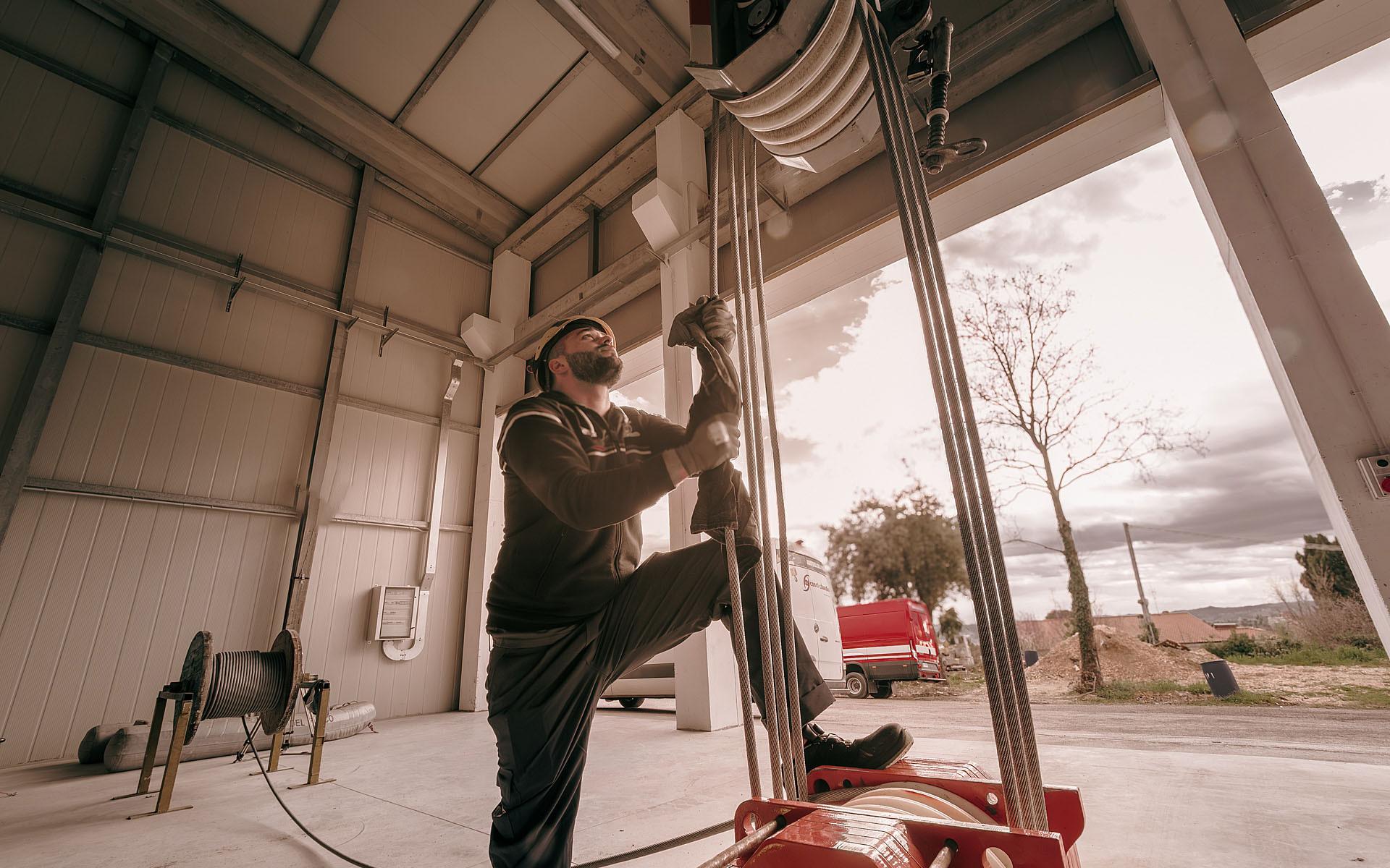 Autogru Vigili del Fuoco del comando di Macerata. Intervento di sostituzione fune di carico e relativo collaudo con prova di carico.